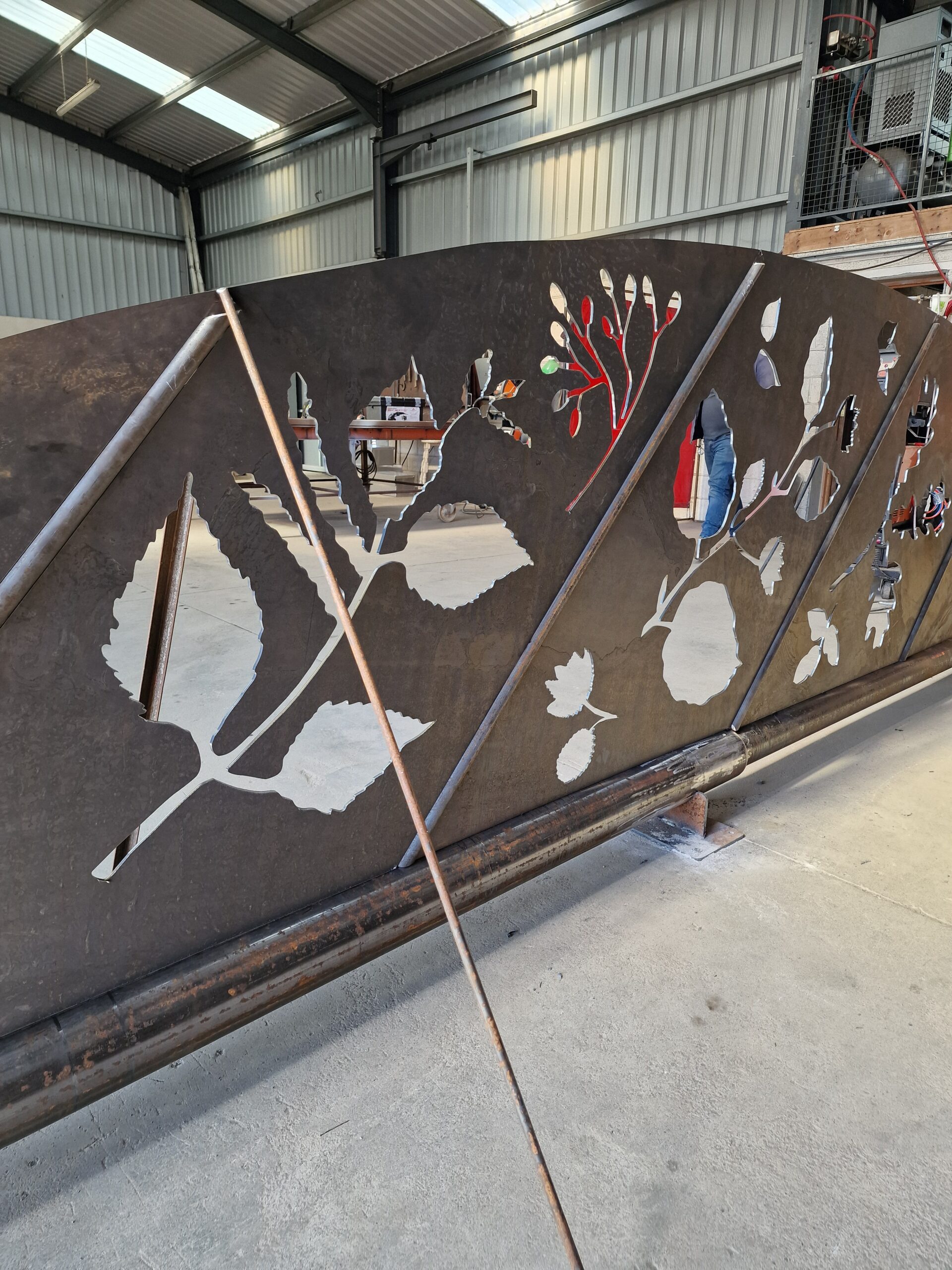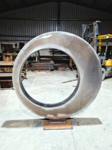 masterfully transformed into precision laser-cut designs by the Design Team. Liam and the Fabrication Team meticulously engineered and assembled each component, ensuring exceptional structural integrity and artistic detail. From the very first consultation, safe handling, transport, and installation were central to the project’s planning. Every stage was calculated to achieve flawless placement and faithful realisation of the vision and aspiration for its erection in a private arboretum in the West of Ireland. The result is a striking fusion of craftsmanship, engineering, and landscape art – an enduring testament to what Corten Steel can achieve in sculptural and architectural form. We call it Engineering Creativity.