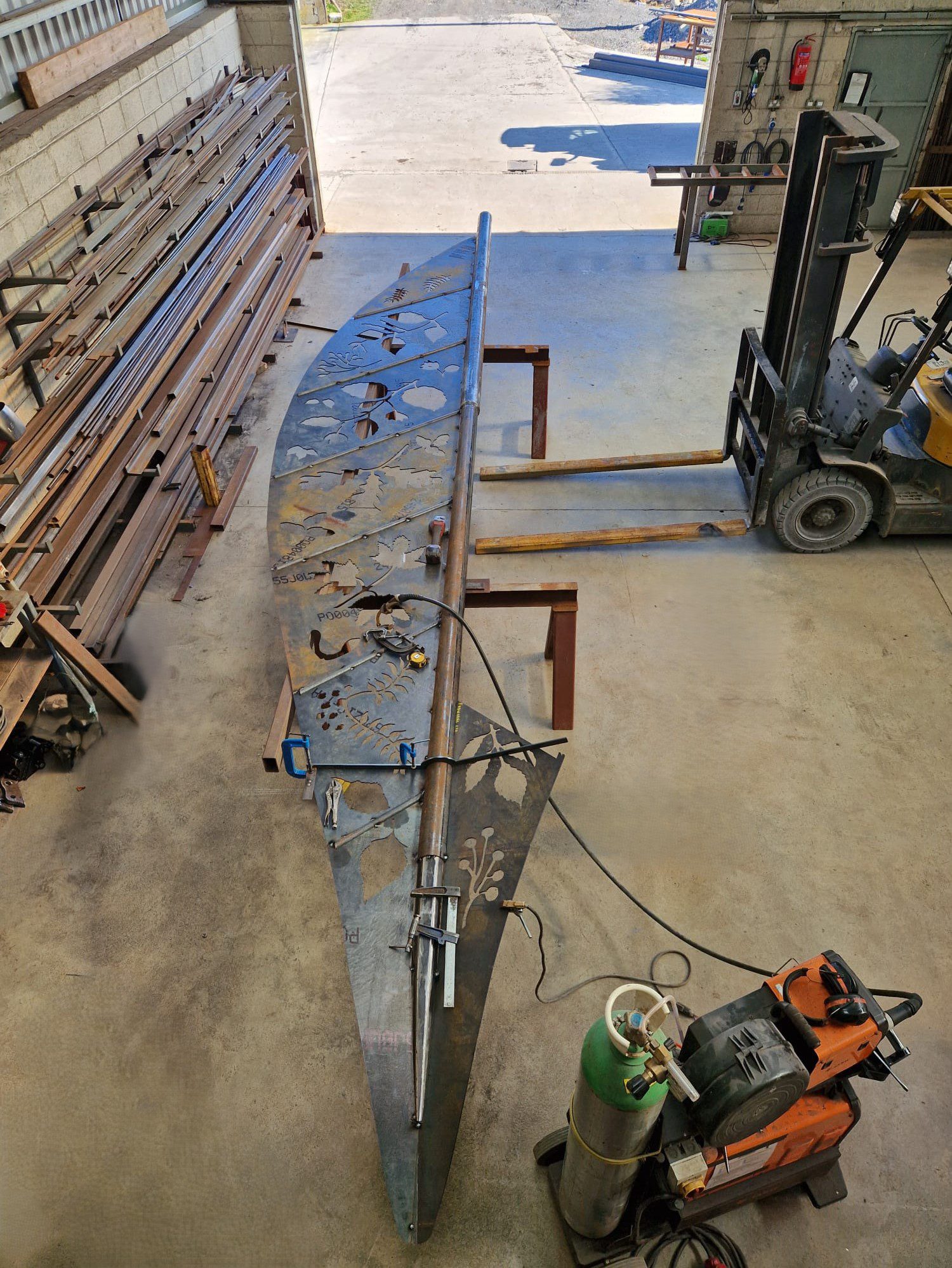This monumental 8 metre leaf sculpture began its journey in Fabworx workshop, offered as a vision in the form of a hand-sketched design. The sketch was